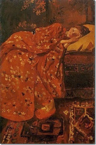 The Red Kimono pictures are by George Heidrik Breitner from Wikimedia Commons. He did at least three pictures of a woman in this particular garment, and we used a different kimono picture by him for Evelyn Waugh’s Helena.